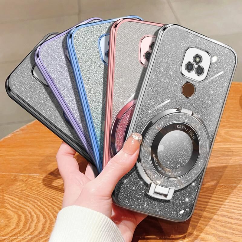Για Motorola Moto E7 Plus επιμεταλλωμένο διαβάθμιση Glitter στρογγυλό κάτοχος TPU τηλέφωνο υπόθεση (ασημί)