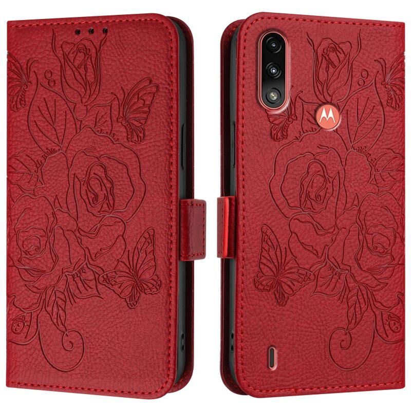 Για Motorola Moto E7 Power 2021 Ανάγλυφο Rose RFID Anti-theft Δερμάτινη θήκη τηλεφώνου (Κόκκινο)