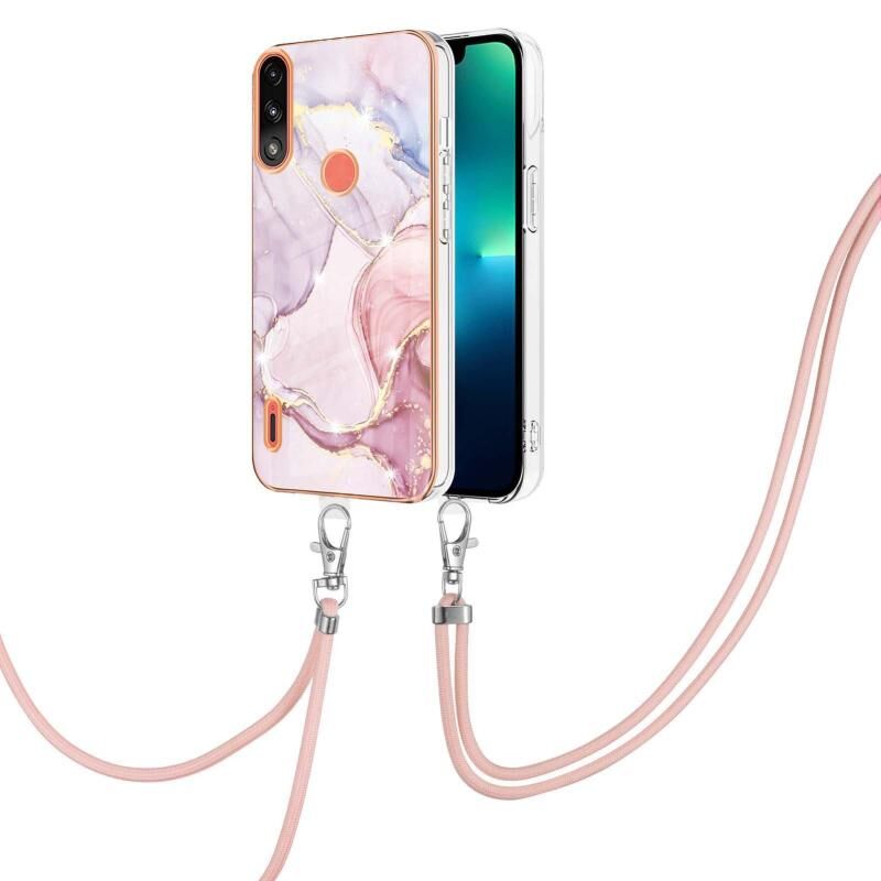 Θήκη κινητού τηλεφώνου για Motorola Moto E7 Power / E7i Power με επιμετάλλωση, σχέδιο μάρμαρου IMD, από TPU με κορδόνι (Μωβ 001)