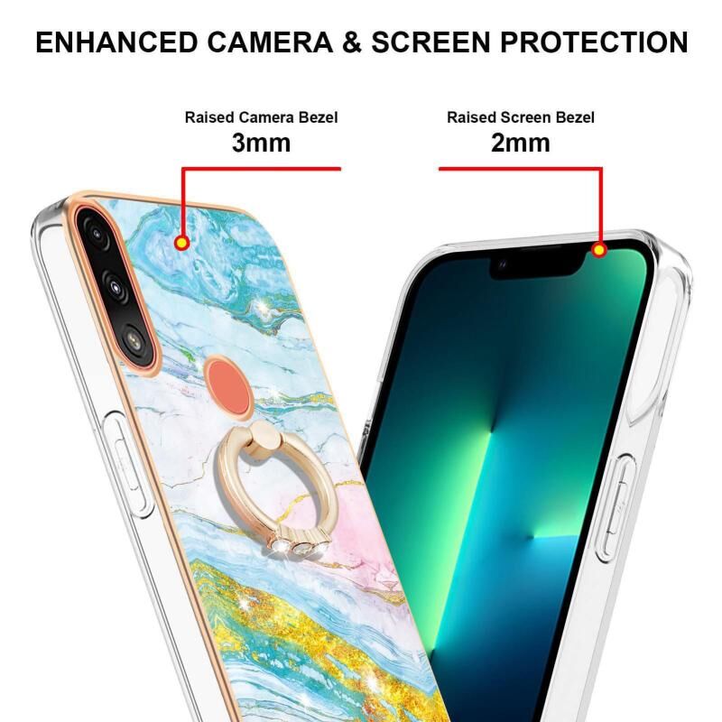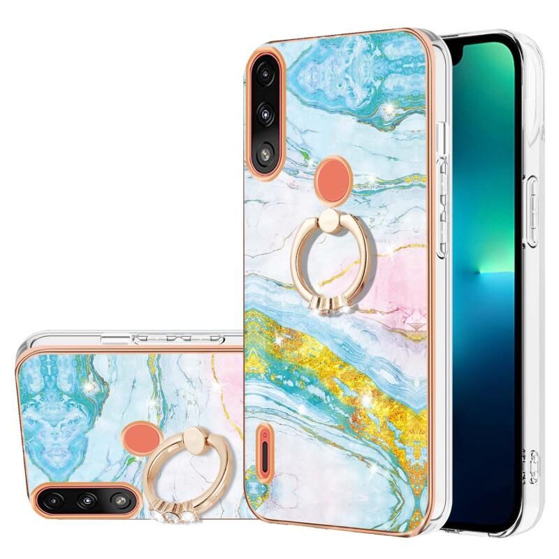 Θήκη κινητού τηλεφώνου με δακτύλιο στήριξης, αντικραδασμική από TPU με σχέδιο μαρμάρου και ηλεκτρολυτική επικάλυψη για Motorola Moto E7 Power / E7i Power (Λευκό 006)