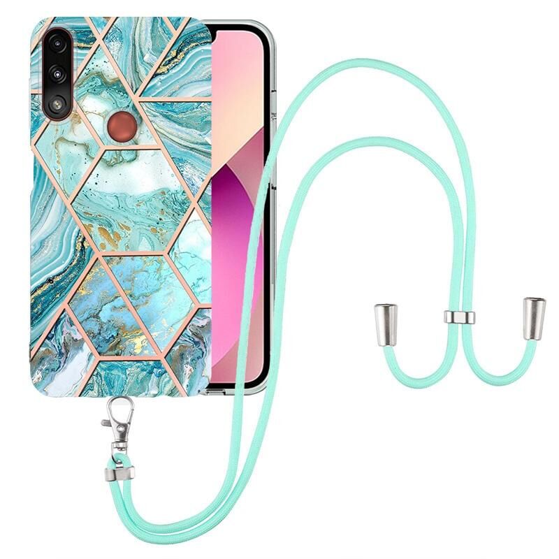 Θήκη κινητού τηλεφώνου TPU με ηλεκτρολυτική επιμετάλλωση και μαρμάρινο σχέδιο για Motorola Moto E7 Power / E7i Power με κορδόνι (Σκούρο Μωβ)