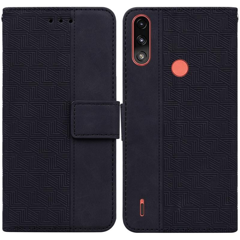 Για Motorola Moto E7 Power/E7i Power Γεωμετρική ανάγλυφη δερμάτινη θήκη τηλεφώνου (Μαύρο)