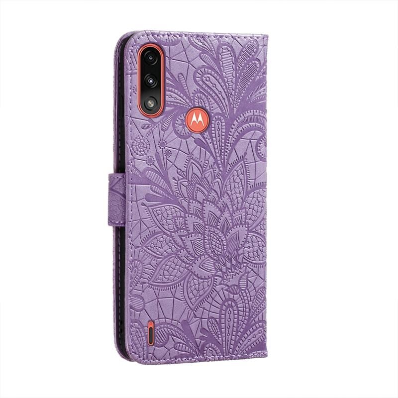 Για Motorola Moto E7 Power Lace λουλούδι ανάγλυφο μοτίβο οριζόντια Flip δερμάτινη θήκη με θήκη & υποδοχές για κάρτες & πορτοφόλι & πλαίσιο φωτογραφιών (μωβ)