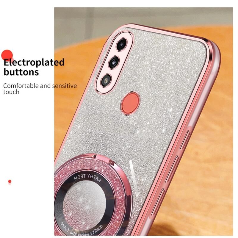 Για Motorola Moto E7 Power Plated Gradient Glitter στρογγυλό κάτοχος TPU τηλέφωνο υπόθεση (Μπλε Σιέρρα)