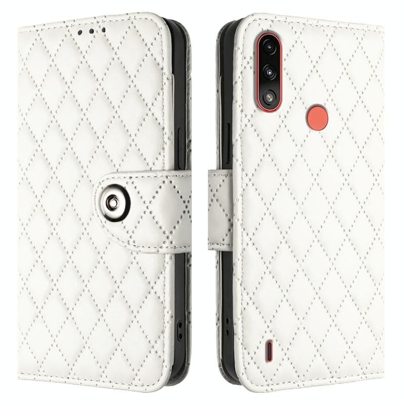 Για Motorola Moto E7 Power Rhombic Texture Flip δερμάτινη θήκη τηλεφώνου με κορδόνι (λευκό)