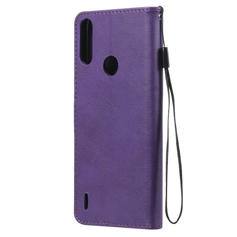 Για Motorola Moto E7 Power Αμιγές χρώμα Οριζόντια Flip Προστατευτική δερμάτινη θήκη με θήκη & υποδοχές για κάρτες & πορτοφόλι & πλαίσιο φωτογραφιών & κορδόνι (μωβ)