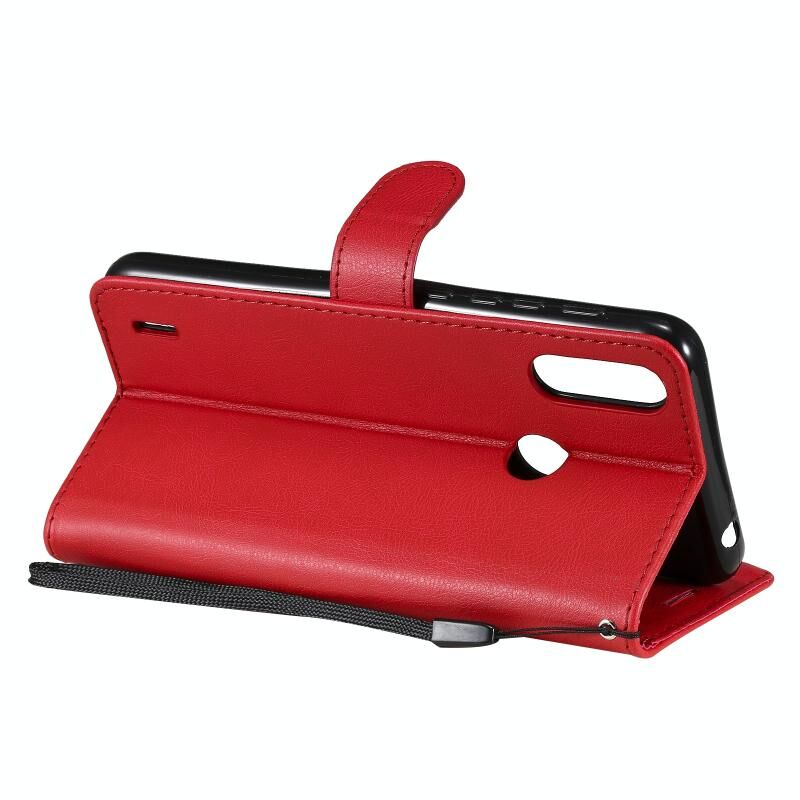 Για Motorola Moto E7 Power Αμιγές χρώμα Οριζόντια Flip Προστατευτική δερμάτινη θήκη με θήκη & υποδοχές για κάρτες & πορτοφόλι & πλαίσιο φωτογραφιών & κορδόνι (κόκκινο)