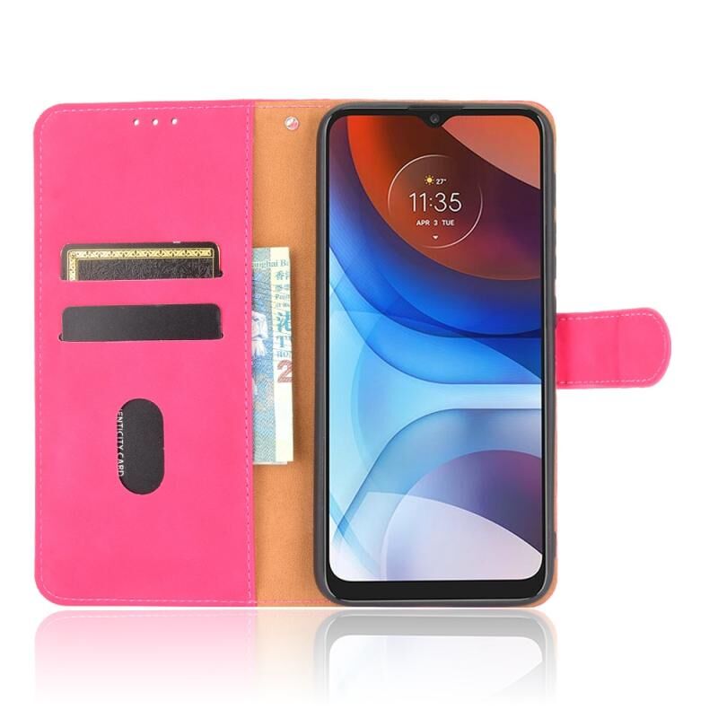 Για Motorola Moto E7 Power Solid Color Skin Feel μαγνητική πόρπη οριζόντια Flip μοσχάρι υφή PU δέρμα υπόθεση με κάτοχο & υποδοχές καρτών & πορτοφόλι (Rose Red)