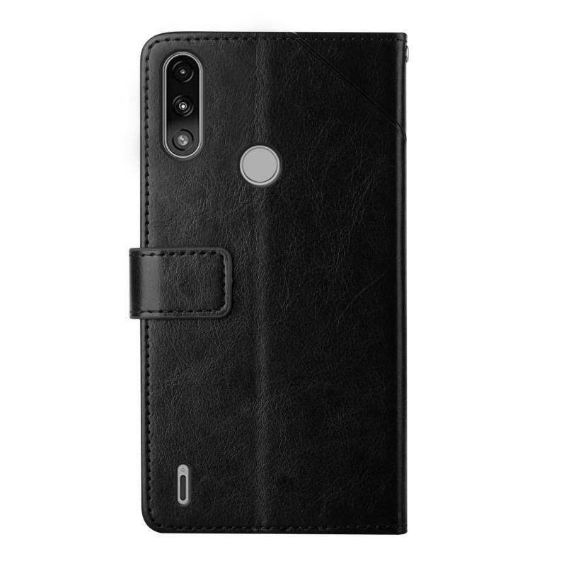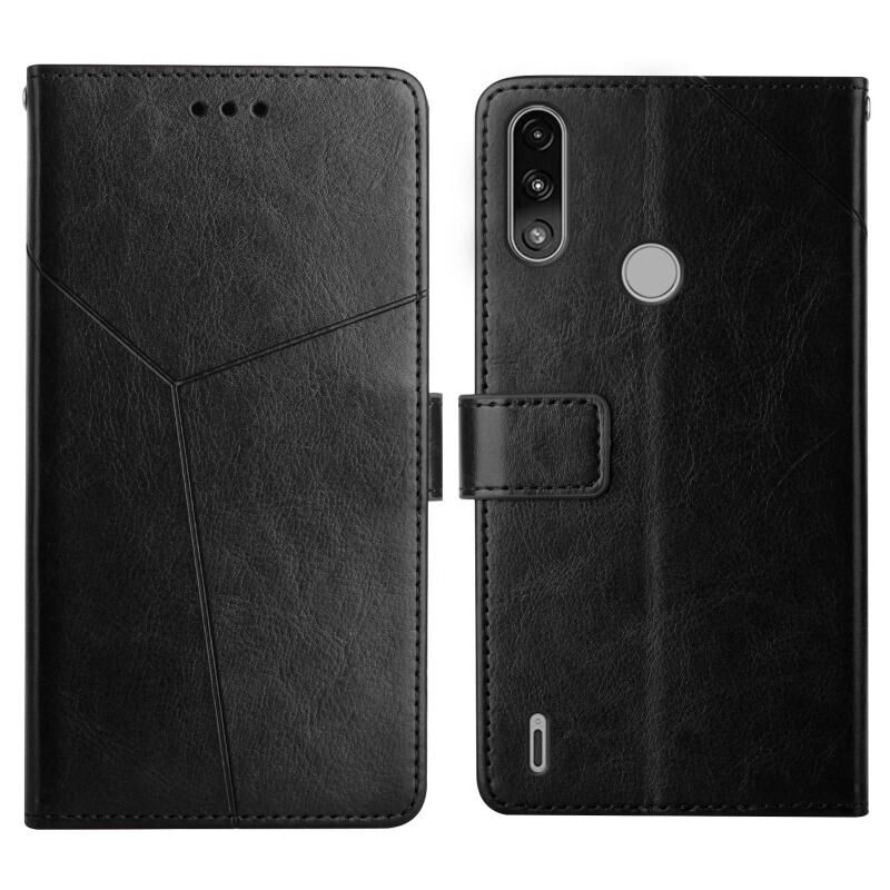 Για Motorola Moto E7 Power Y Stitching Οριζόντια Flip δερμάτινη θήκη τηλεφώνου με θήκη & υποδοχές για κάρτες & πορτοφόλι & πλαίσιο φωτογραφιών (μαύρο)