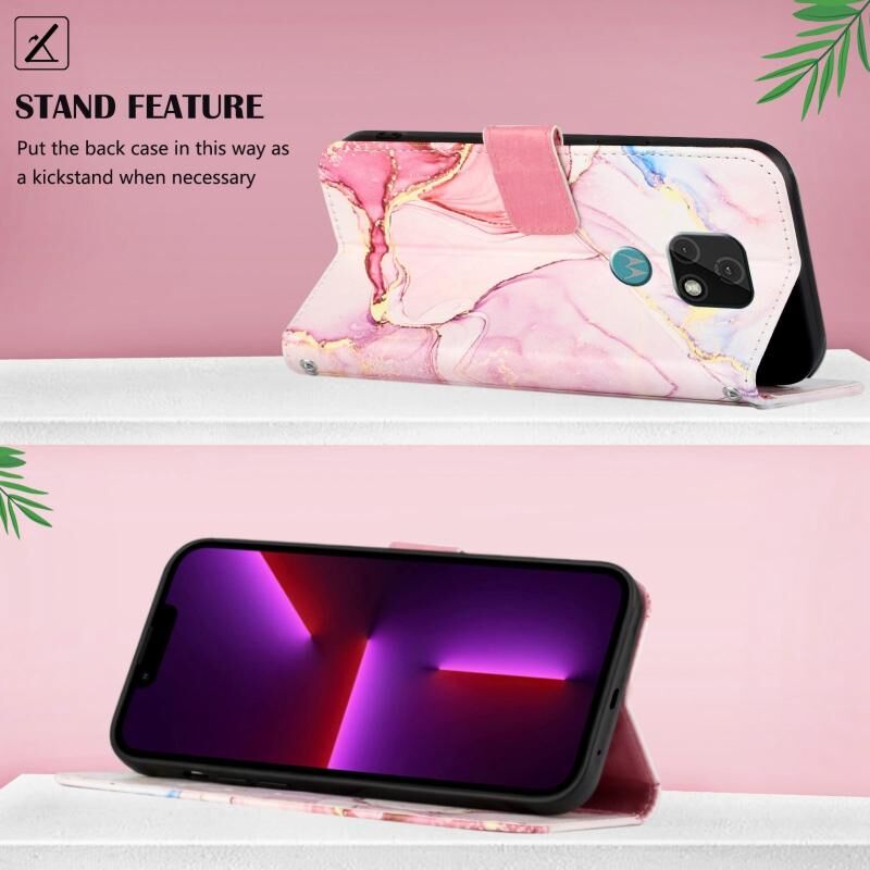 Θήκη τηλεφώνου από δέρμα με σχέδιο μάρμαρου για Motorola Moto E7 PT003 (Ροζ Μωβ Χρυσό LS001)