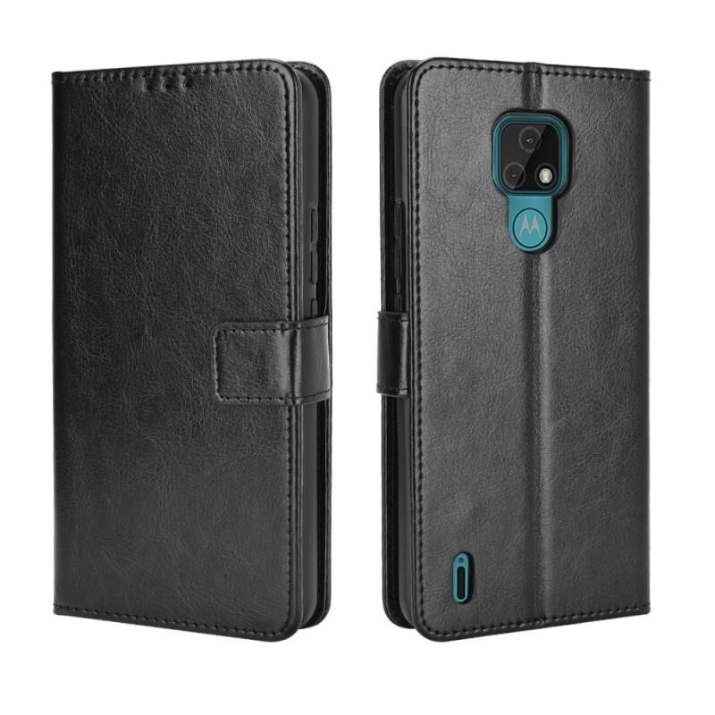 Για Motorola Moto E7 Retro Crazy Horse Υφή οριζόντια Flip δερμάτινη θήκη με θήκη & υποδοχές καρτών & πλαίσιο φωτογραφιών (μαύρο)