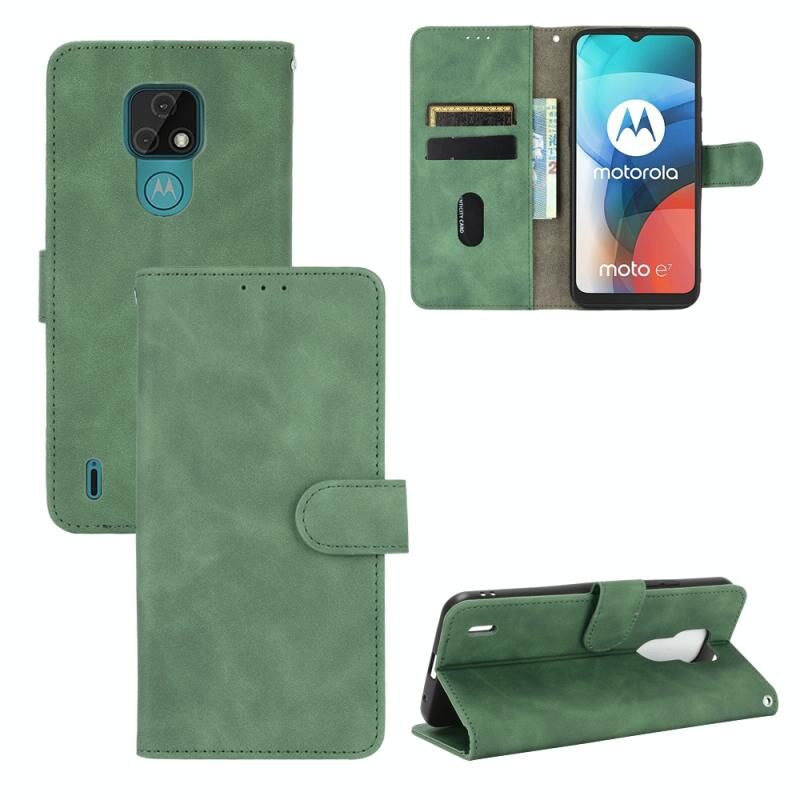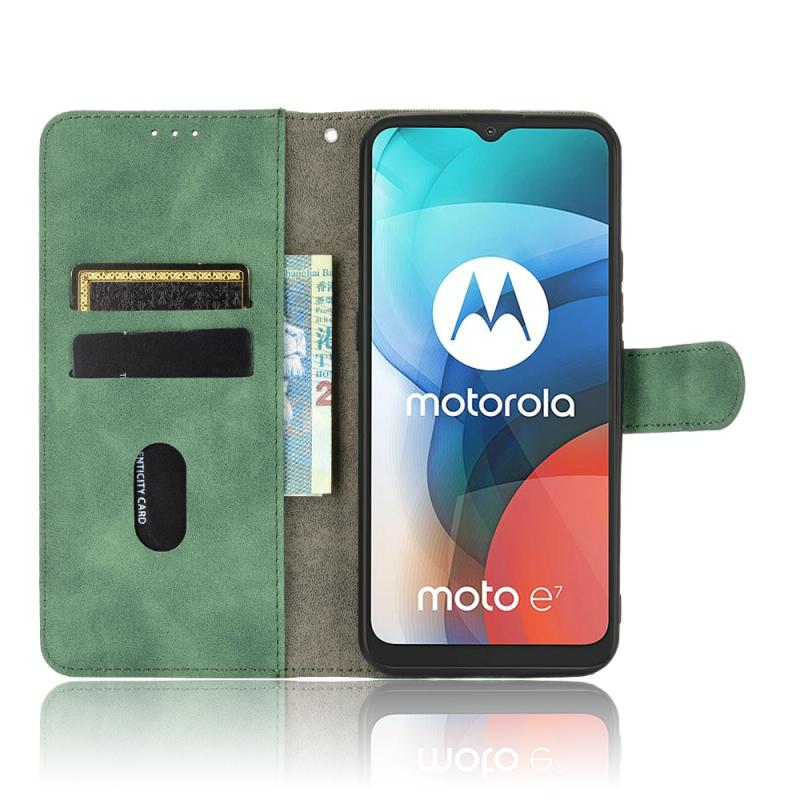 For Motorola Moto E7 Solid Color Skin Feel Magnetic Buckle Horizontal Flip Calf Texture PU Leather Case with Holder & Card Slots & Wallet(Green)
