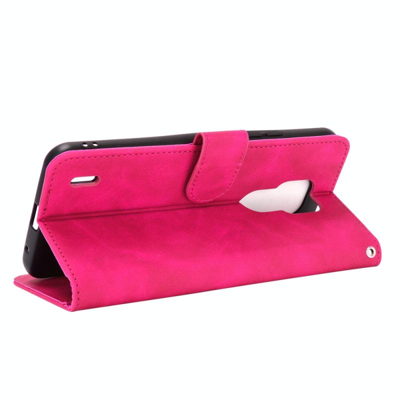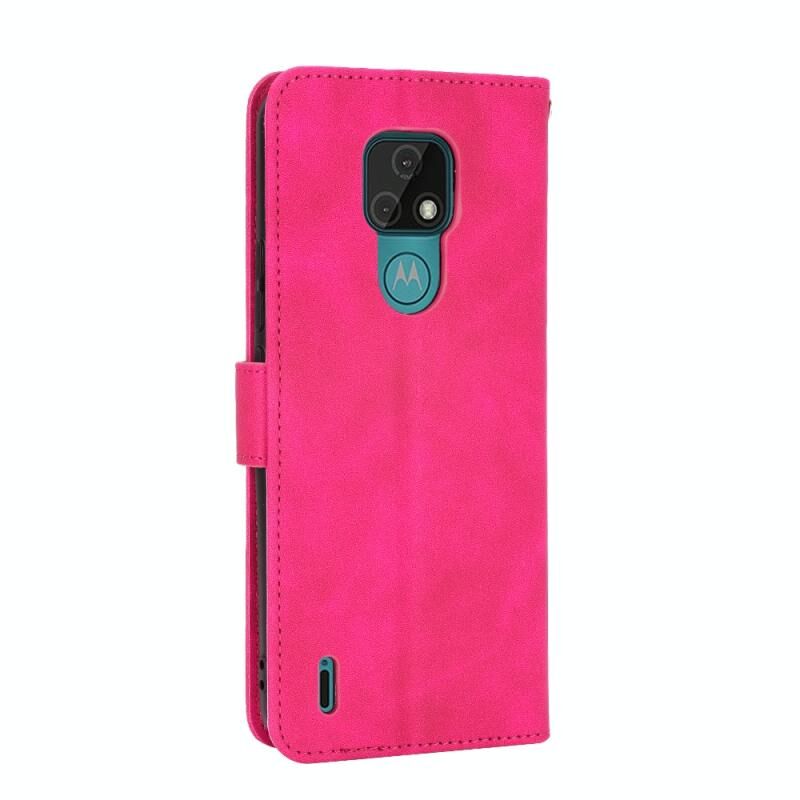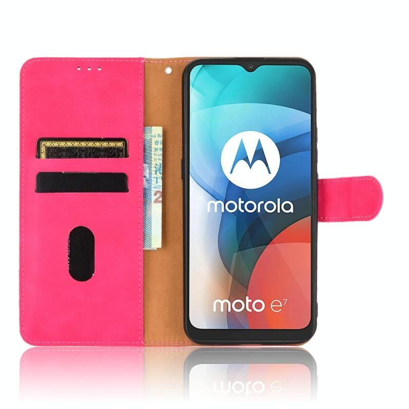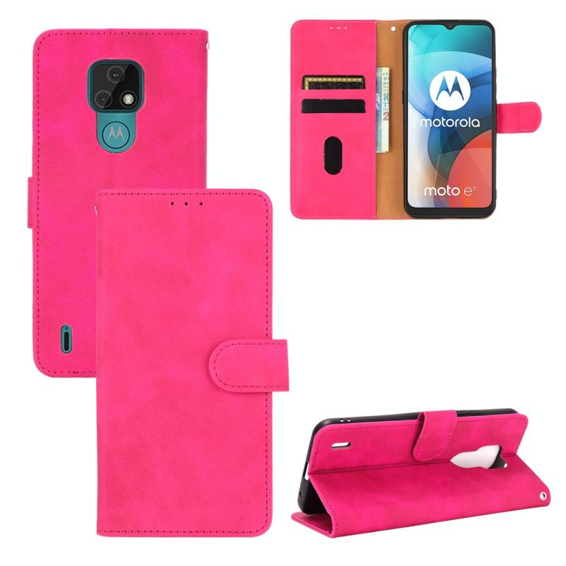For Motorola Moto E7 Solid Color Skin Feel Magnetic Buckle Horizontal Flip Calf Texture PU Leather Case with Holder & Card Slots & Wallet(Rose Red)