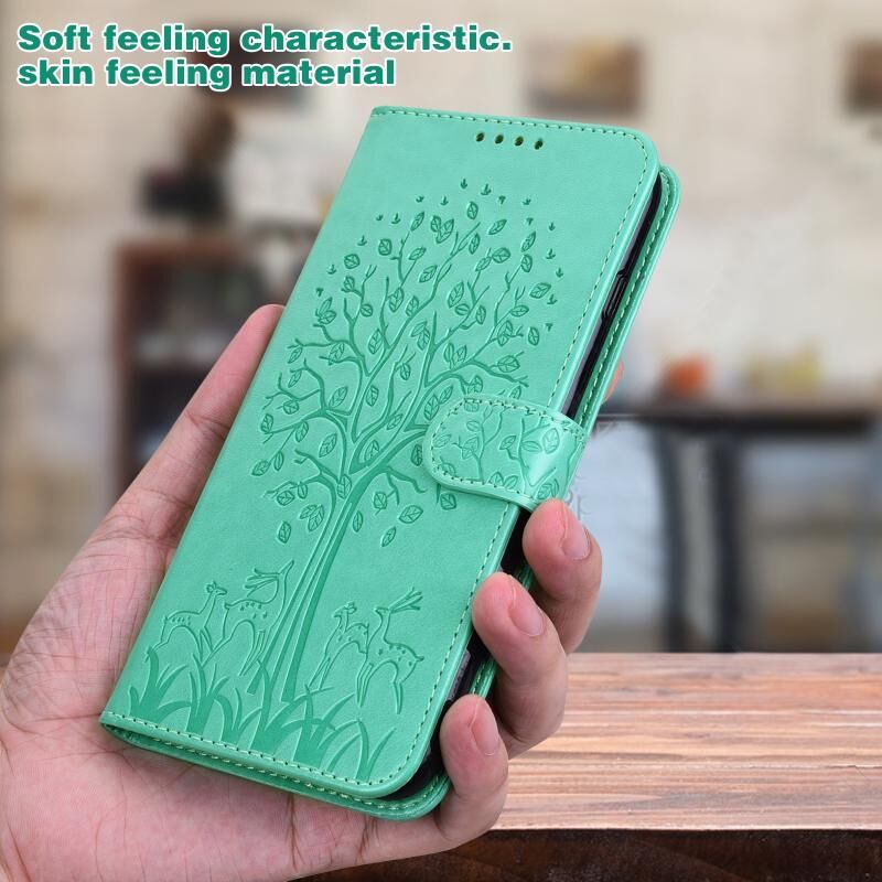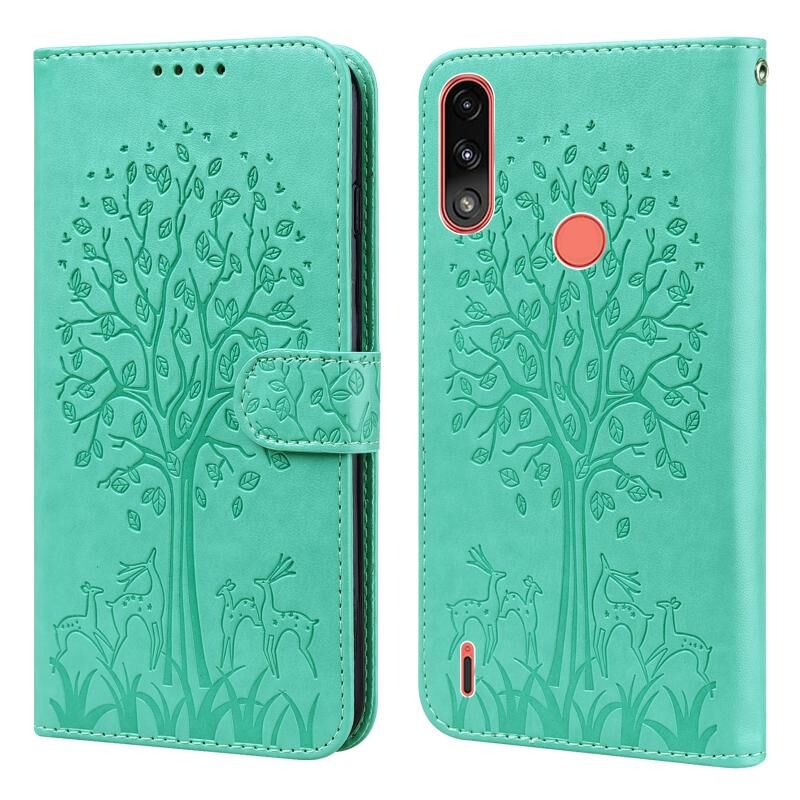 Για Motorola Moto E7i Power / E7 Power Tree & Deer Pattern Pressed Printing Horizontal Flip Leather Phone Case (πράσινο)