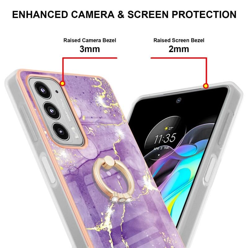Θήκη για Motorola Moto Edge 20 με Επικάλυψη Ηλεκτρολυτικής Μαρμάρου, IMD TPU, Αντικραδασμική με Δακτύλιο Στήριξης (Μωβ 001)