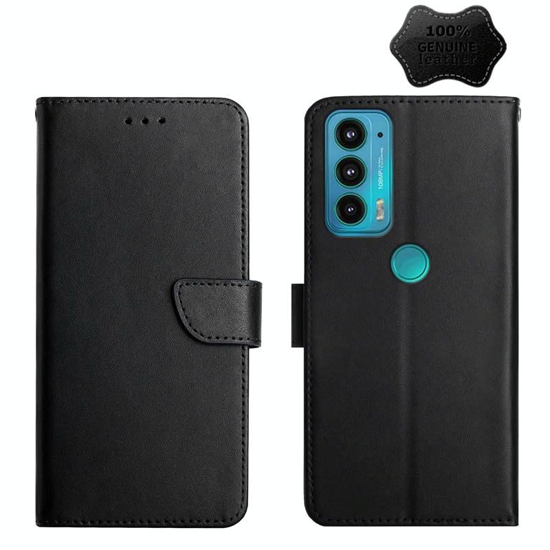 For Motorola Moto Edge 20 Genuine Leather Fingerprint-proof Horizontal Flip Phone Case(Black)