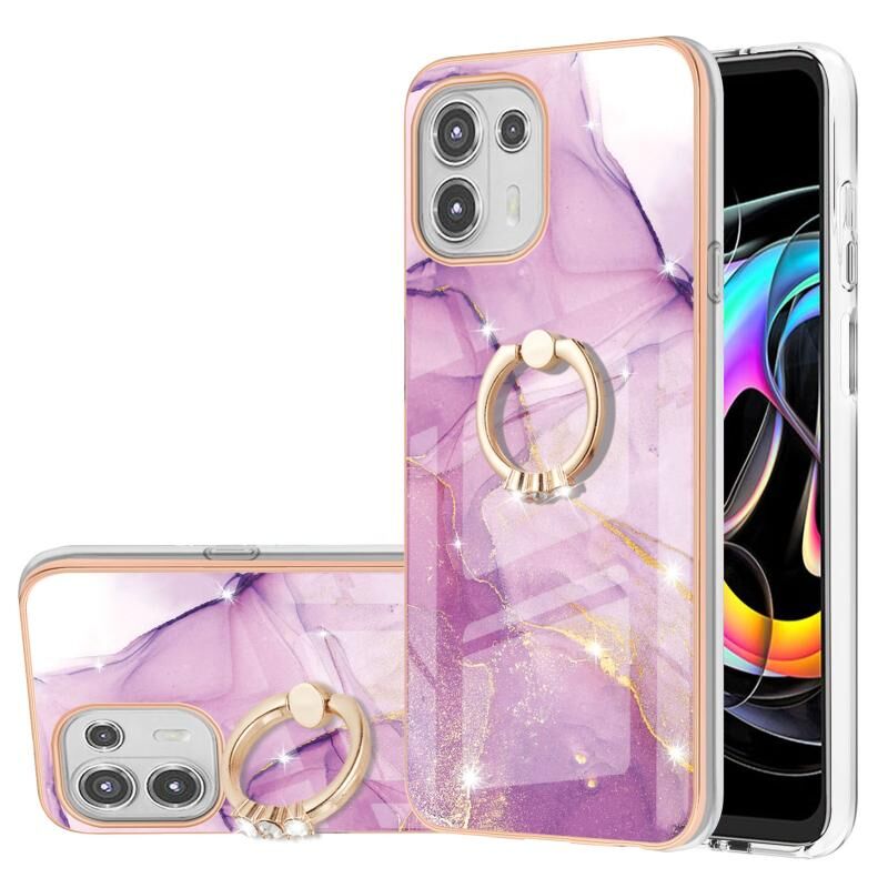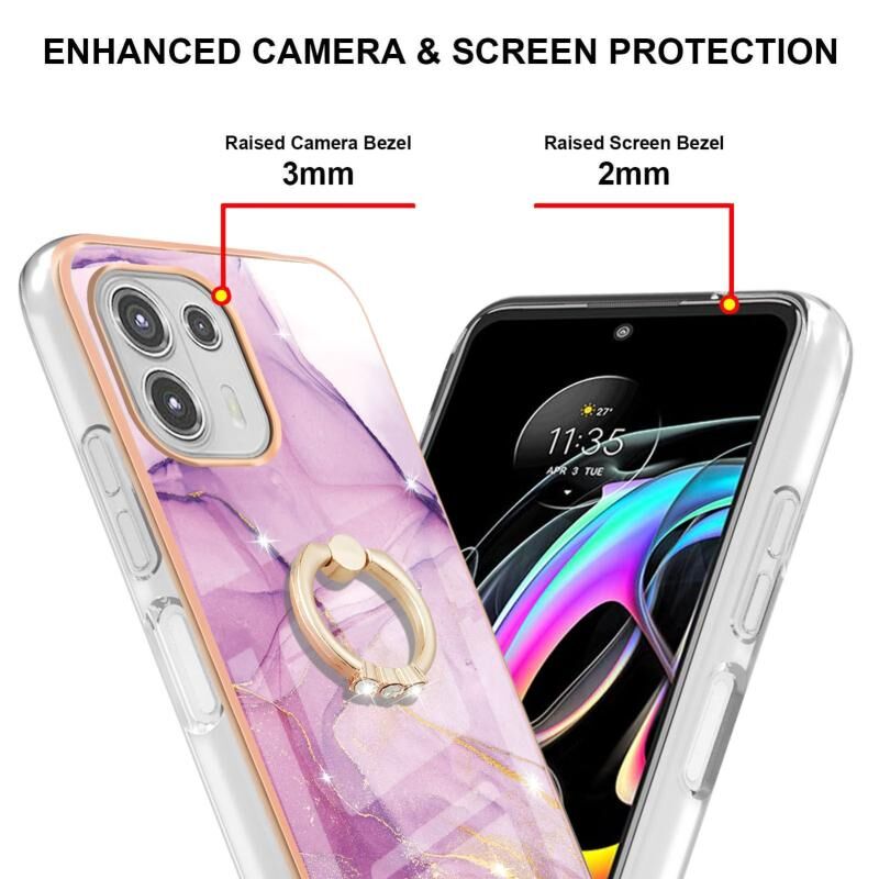 Θήκη για Motorola Moto Edge 20 Lite με Επικάλυψη Ηλεκτρολυτικής Επιμετάλλωσης, Μοτίβο Μαρμάρου IMD, Αντικραδασμική από TPU με Δακτύλιο Στήριξης (Μωβ 001)