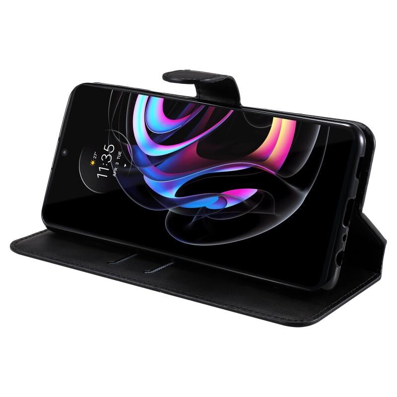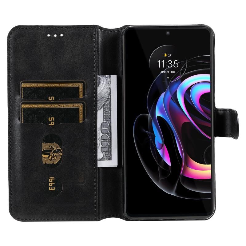 Για Motorola Moto Edge 20 Pro Κλασσική θήκη από δέρμα μοσχαριού PU + TPU Οριζόντια θήκη με θήκη για κάρτες & υποδοχές & πορτοφόλι (μαύρο)