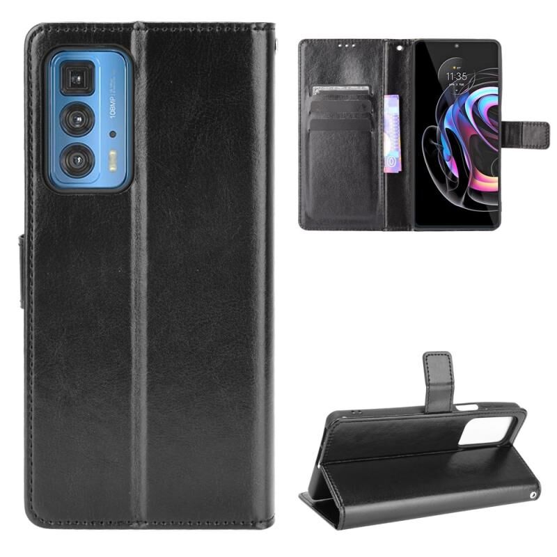Για Motorola Moto Edge 20 Pro / Edge S Pro Crazy Horse Υφή οριζόντια Flip δερμάτινη θήκη με θήκη & υποδοχές καρτών & κορδόνι (μαύρο)