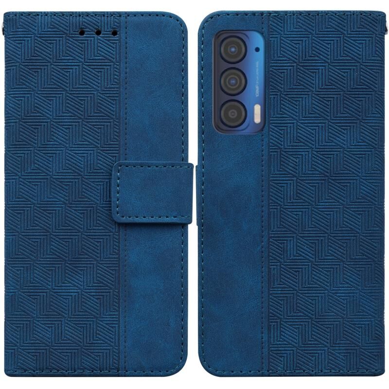 Για Motorola Moto Edge 2021 Γεωμετρική ανάγλυφη δερμάτινη θήκη τηλεφώνου (Μπλε)