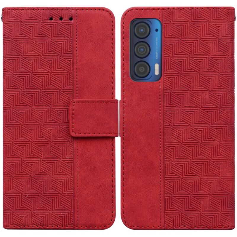 Για Motorola Moto Edge 2021 Γεωμετρική ανάγλυφη δερμάτινη θήκη τηλεφώνου (Κόκκινο)