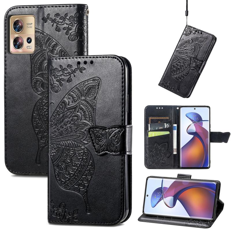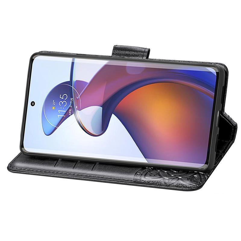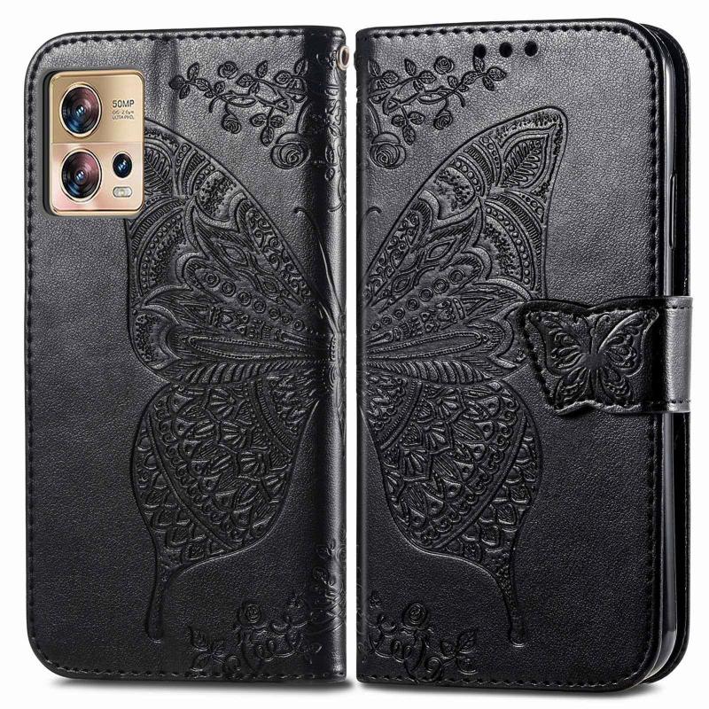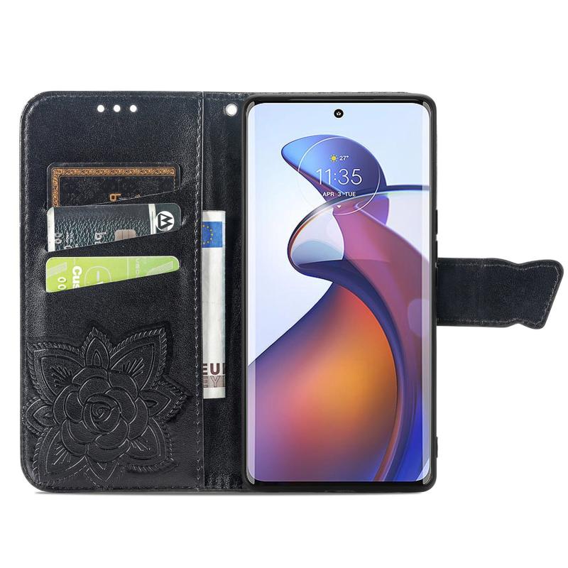 Θήκη τηλεφώνου δερμάτινη ανάγλυφη με σχέδιο πεταλούδας και λουλουδιών για Motorola Moto Edge 30 Fusion (Μαύρο)