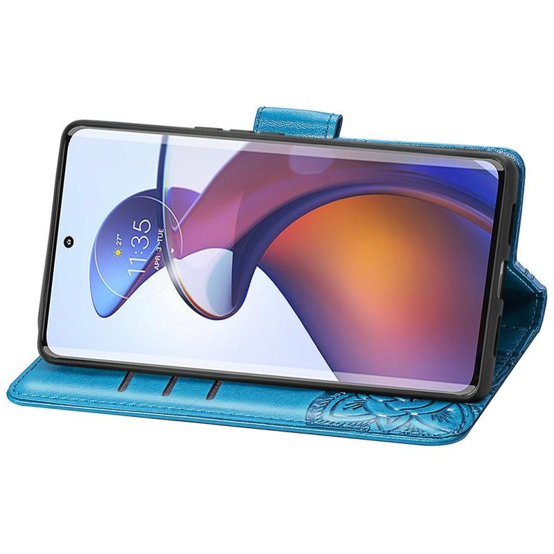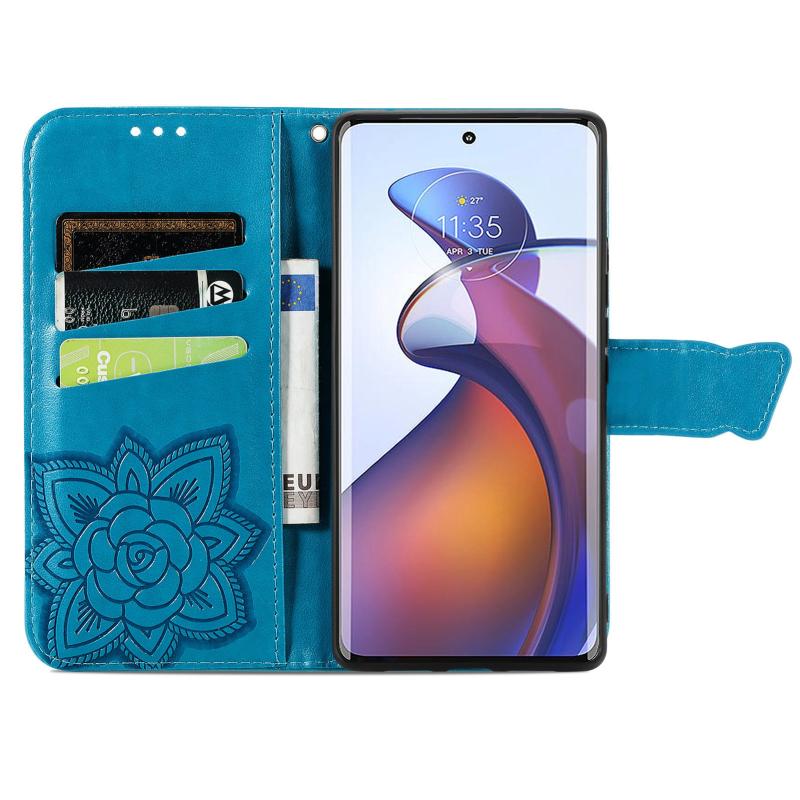 For Motorola Moto Edge 30 Fusion Butterfly Love Flower Embossed Leather Phone Case(Blue)