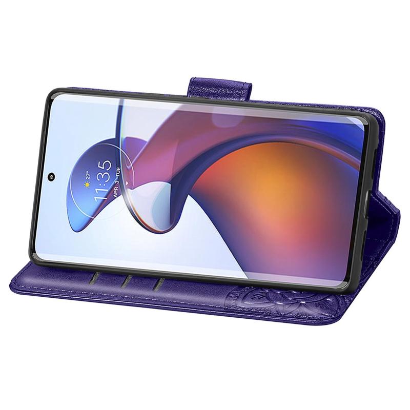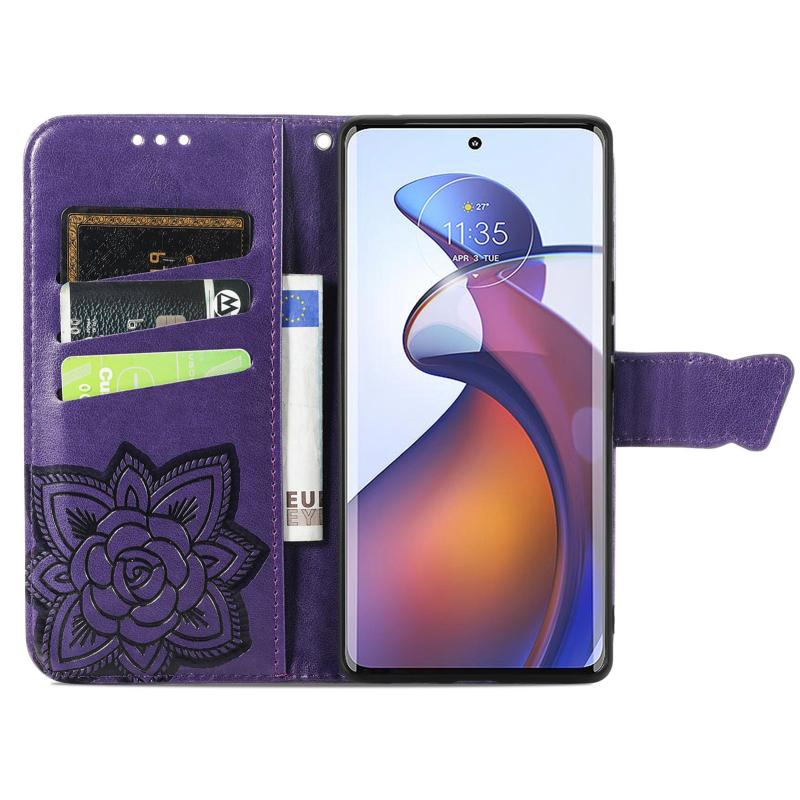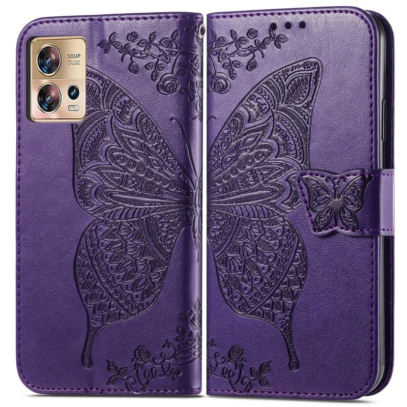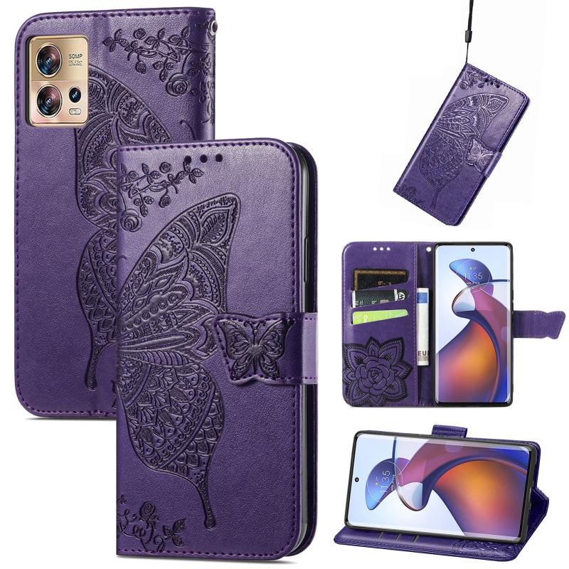 For Motorola Moto Edge 30 Fusion Butterfly Love Flower Embossed Leather Phone Case(Dark Purple)
