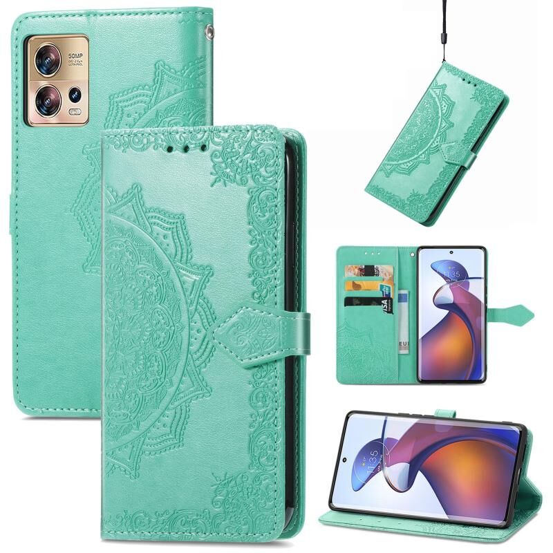 Για Motorola Moto Edge 30 Fusion Mandala λουλούδι ανάγλυφη δερμάτινη θήκη τηλεφώνου (πράσινο)