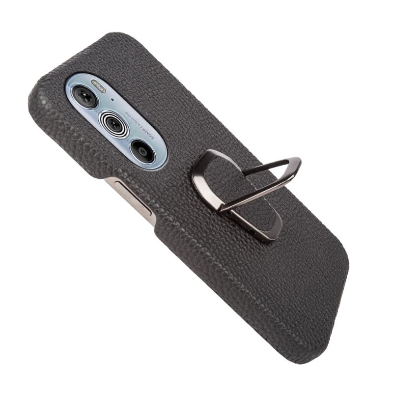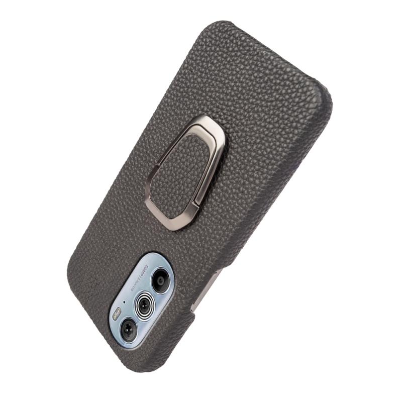 For Motorola Moto Edge 30 Pro Ring Holder Litchi Texture Genuine Leather Phone Case(Black)