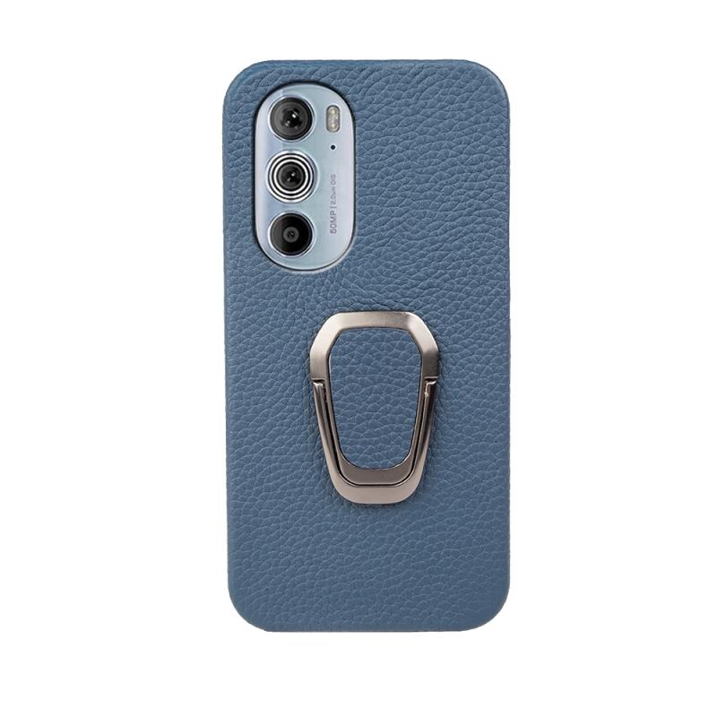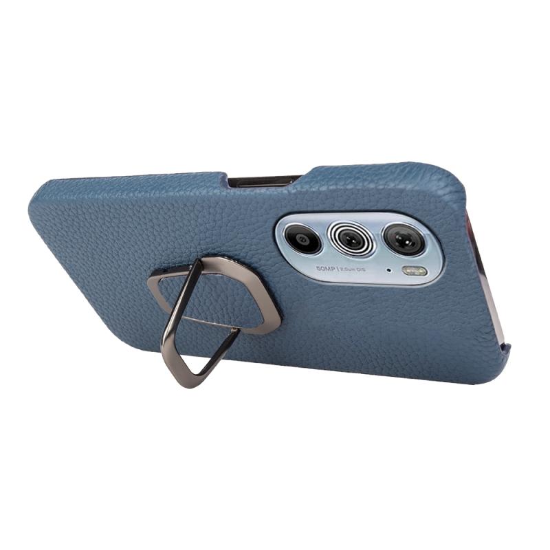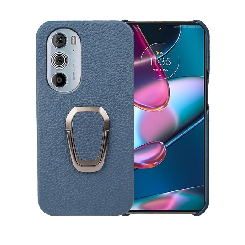 For Motorola Moto Edge 30 Pro Ring Holder Litchi Texture Genuine Leather Phone Case(Blue)