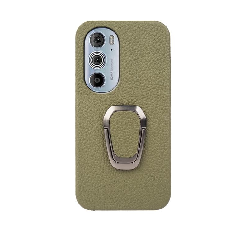 Θήκη κινητού τηλεφώνου από γνήσιο δέρμα με υφή λitchi και δακτύλιο στήριξης για Motorola Moto Edge 30 Pro (Μαύρο)