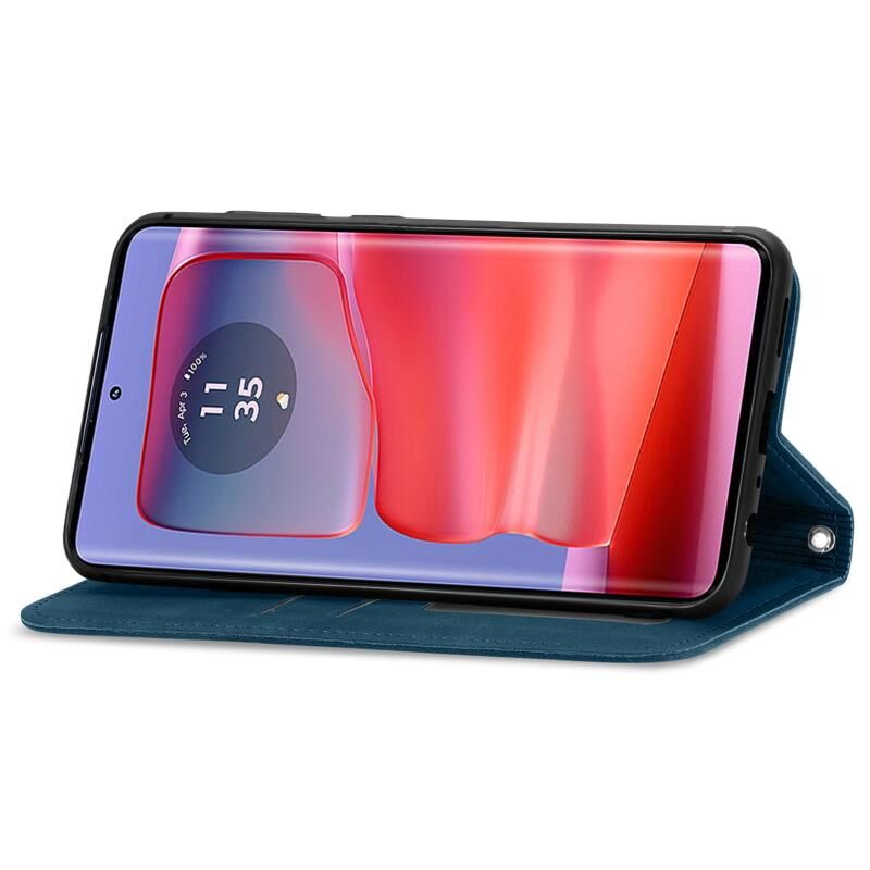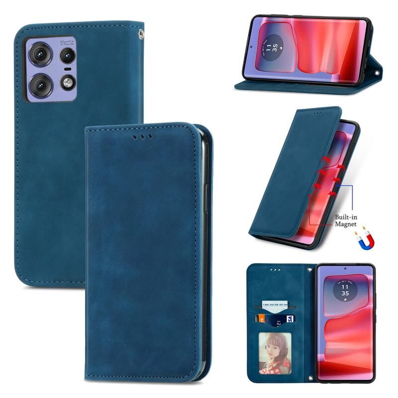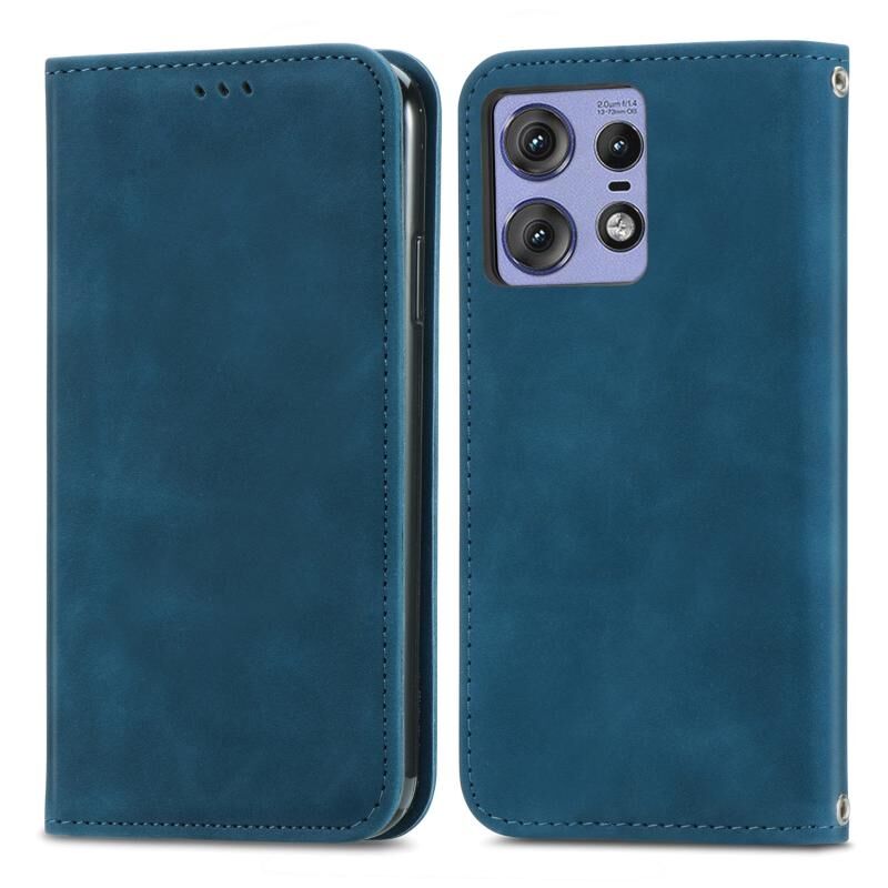 Για Motorola Moto Edge 50 Pro Ρετρό δέρμα αίσθηση μαγνητική Flip δέρμα τηλέφωνο υπόθεση (μπλε)