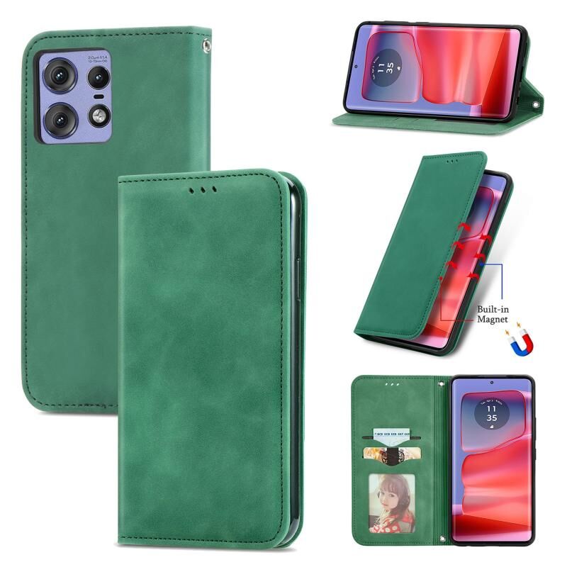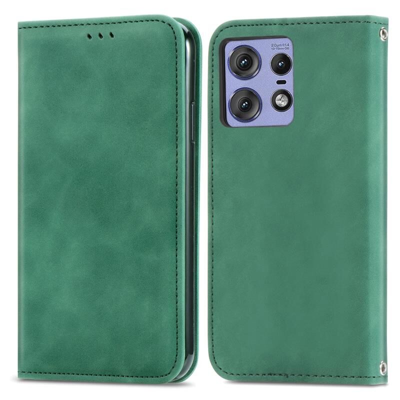Για Motorola Moto Edge 50 Pro Ρετρό δέρμα αίσθηση μαγνητική Flip δέρμα τηλέφωνο υπόθεση (πράσινο)