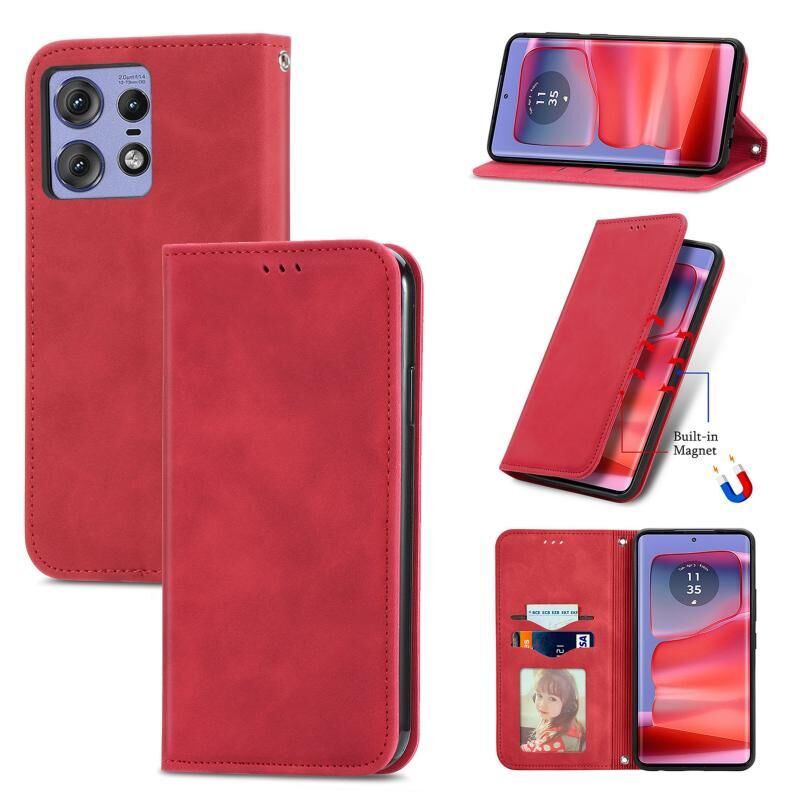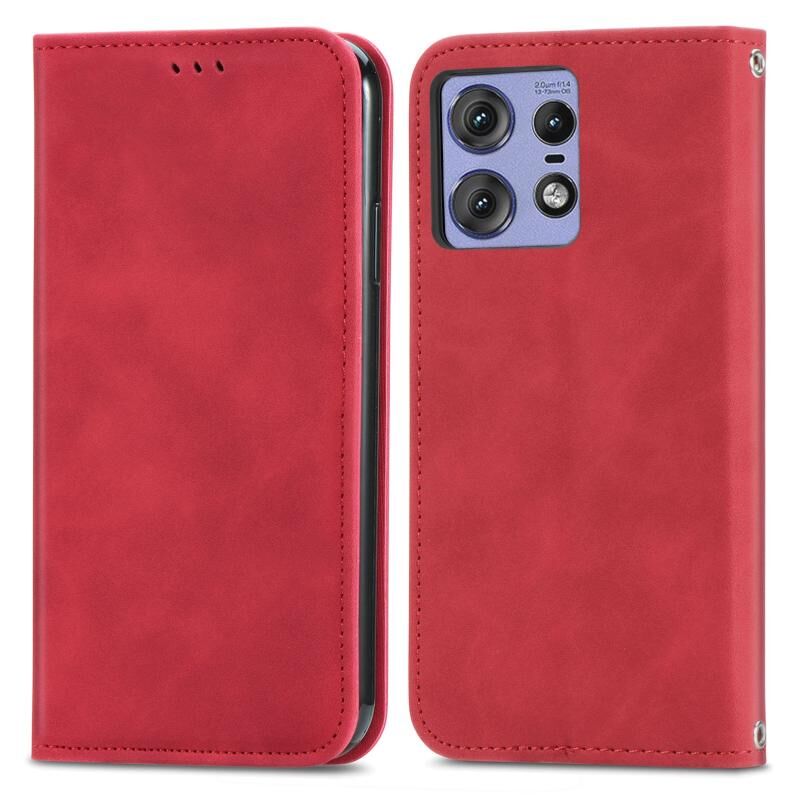 Για Motorola Moto Edge 50 Pro Ρετρό δέρμα αίσθηση μαγνητική Flip δέρμα τηλέφωνο υπόθεση (κόκκινο)