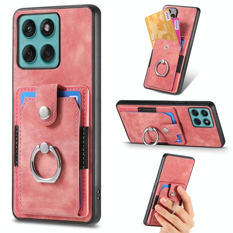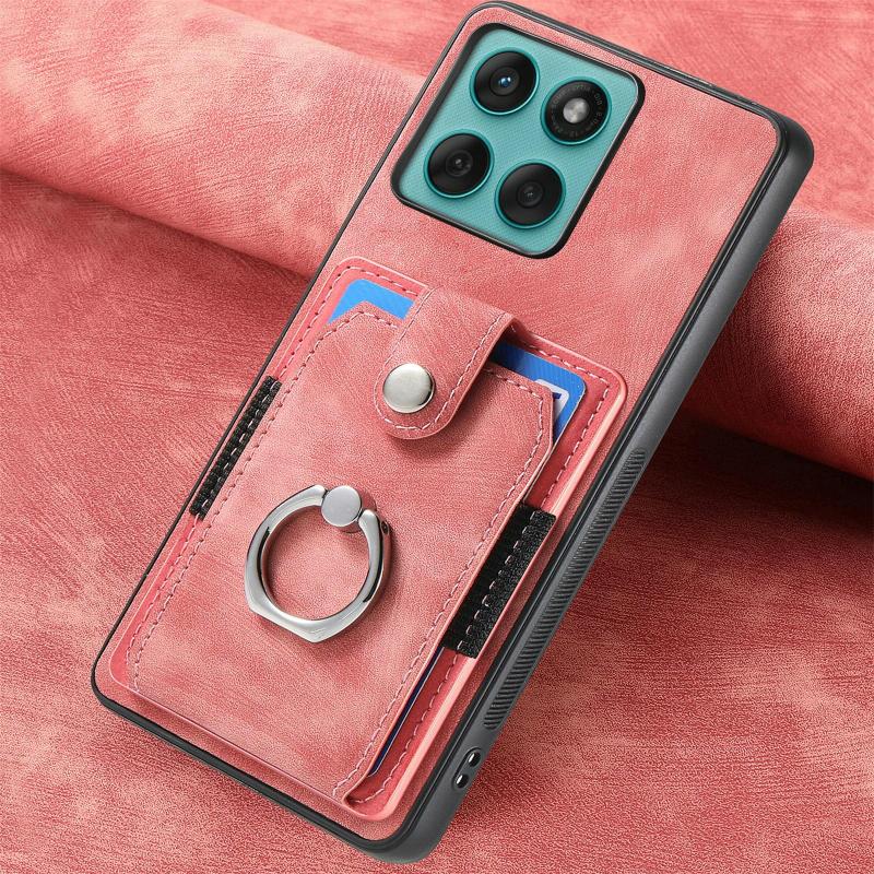 Θήκη κινητού τηλεφώνου με κάρτες και δακτύλιο, αίσθηση retro δέρματος, για Motorola Moto Edge 60 Fusion (Μωβ)
