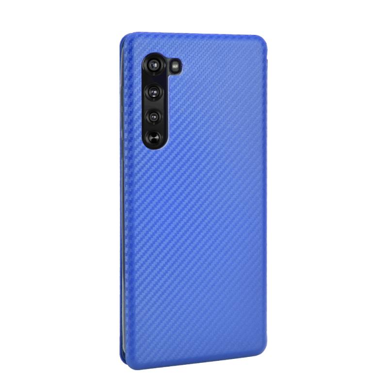 For Motorola Moto Edge Carbon Fiber Texture Horizontal Flip TPU + PC + PU Leather Case with Rope & Card Slot(Blue)