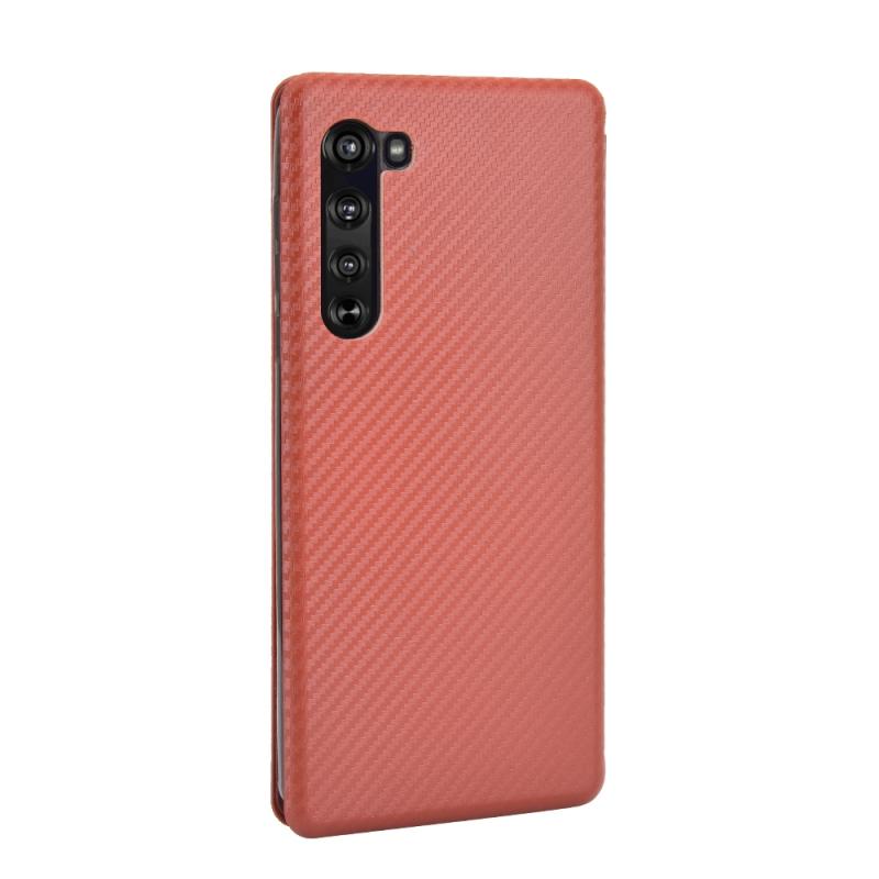 For Motorola Moto Edge Carbon Fiber Texture Horizontal Flip TPU + PC + PU Leather Case with Rope & Card Slot(Brown)