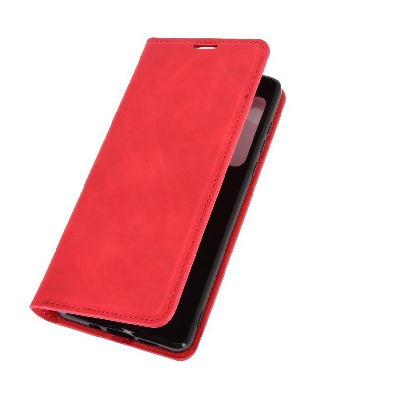Για Motorola Moto Edge Retro-skin Business Μαγνητική δερμάτινη θήκη αναρρόφησης με θήκη & υποδοχές καρτών & πορτοφόλι (κόκκινο)