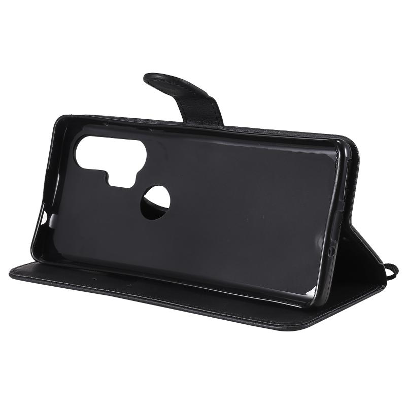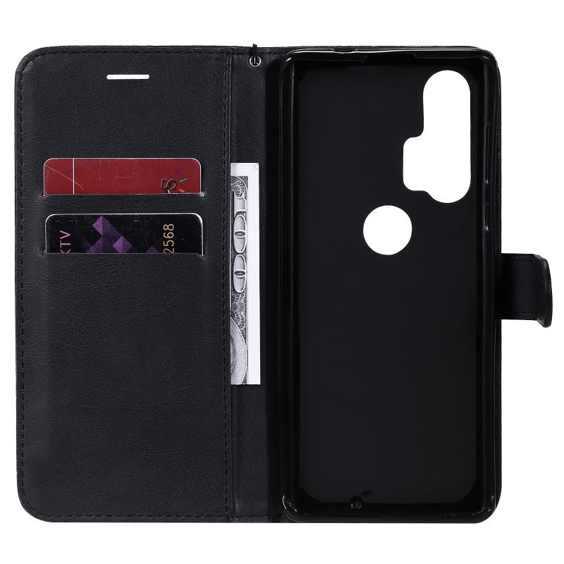 Θήκη δέρματος προστασίας για Motorola Moto Edge+ σε μονόχρωμο οριζόντιο στυλ με βάση, θήκες καρτών, πορτοφόλι, κορνίζα φωτογραφιών και κορδόνι (Χρυσό Ρόδι)