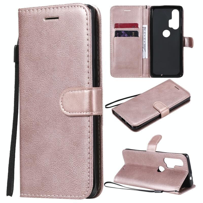 For Motorola Moto Edge+ Solid Color Horizontal Flip Protective Leather Case with Holder & Card Slots & Wallet & Photo Frame & Lanyard(Rose Gold)