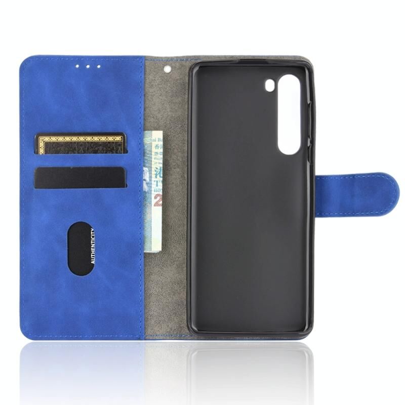 Για Motorola Moto Edge Solid Color Skin Feel μαγνητική πόρπη οριζόντια Flip μοσχάρι υφή PU δέρμα υπόθεση με κάτοχο & υποδοχές καρτών & πορτοφόλι (μπλε)