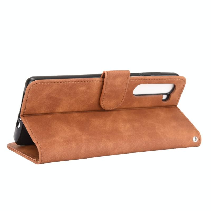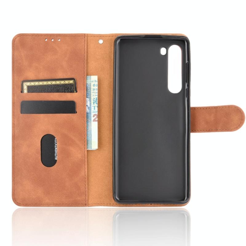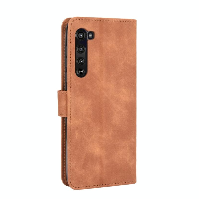 For Motorola Moto Edge Solid Color Skin Feel Magnetic Buckle Horizontal Flip Calf Texture PU Leather Case with Holder & Card Slots & Wallet(Brown)