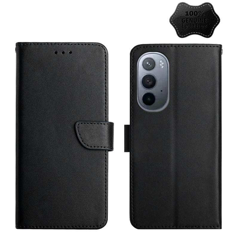 Θήκη τηλεφώνου οριζόντιας αναδίπλωσης από γνήσιο δέρμα για Motorola Moto Edge X30, ανθεκτική στα δακτυλικά αποτυπώματα (Μαύρο)
