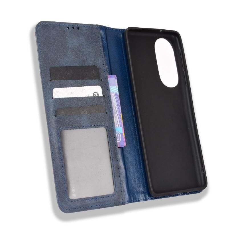 Για Motorola Moto Edge X30 Μαγνητική πόρπη ρετρό τρελό άλογο δερμάτινη θήκη τηλεφώνου (μπλε)