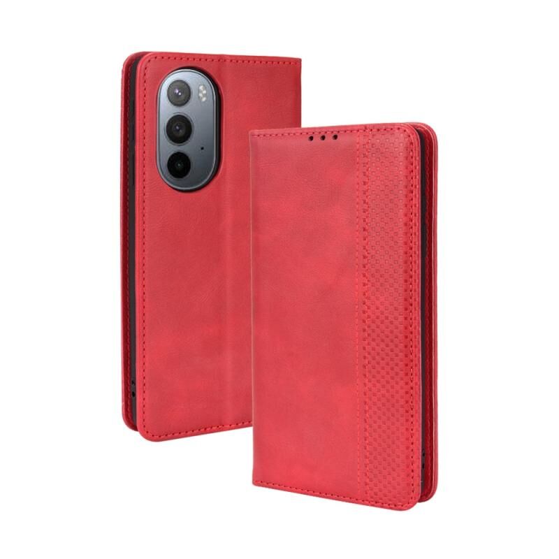 Για Motorola Moto Edge X30 Μαγνητική πόρπη ρετρό τρελό άλογο δερμάτινη θήκη τηλεφώνου (κόκκινο)