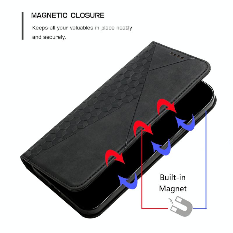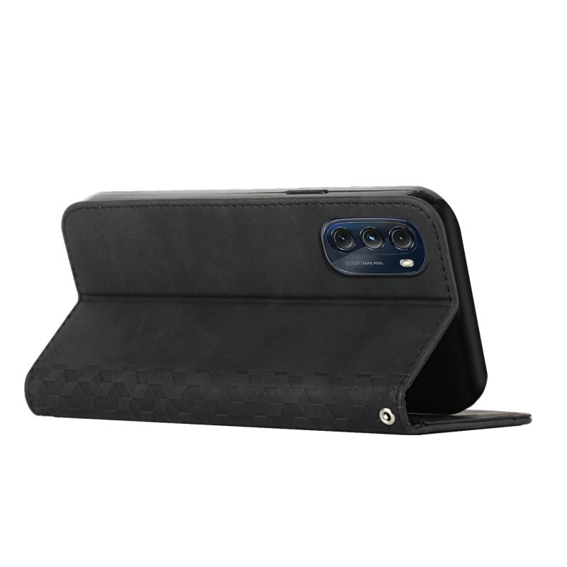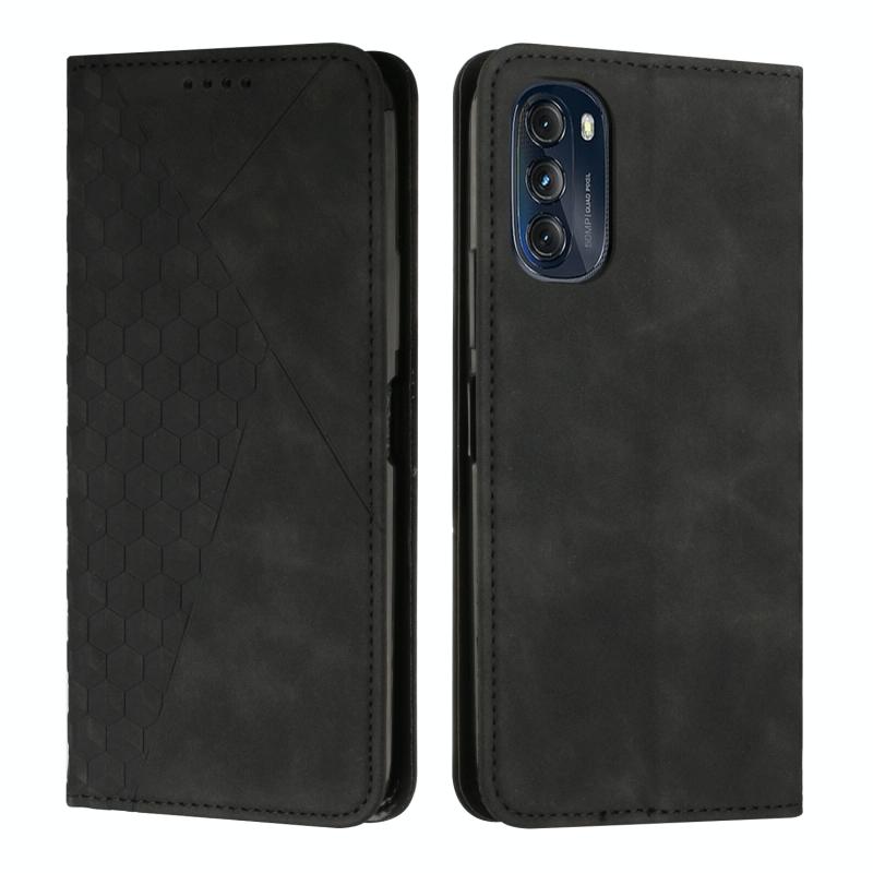 Θήκη κινητού τηλεφώνου με μαγνητική αίσθηση, με σχέδιο διαμαντιού και ραφές για Motorola Moto G 2022 5G (Μαύρο)