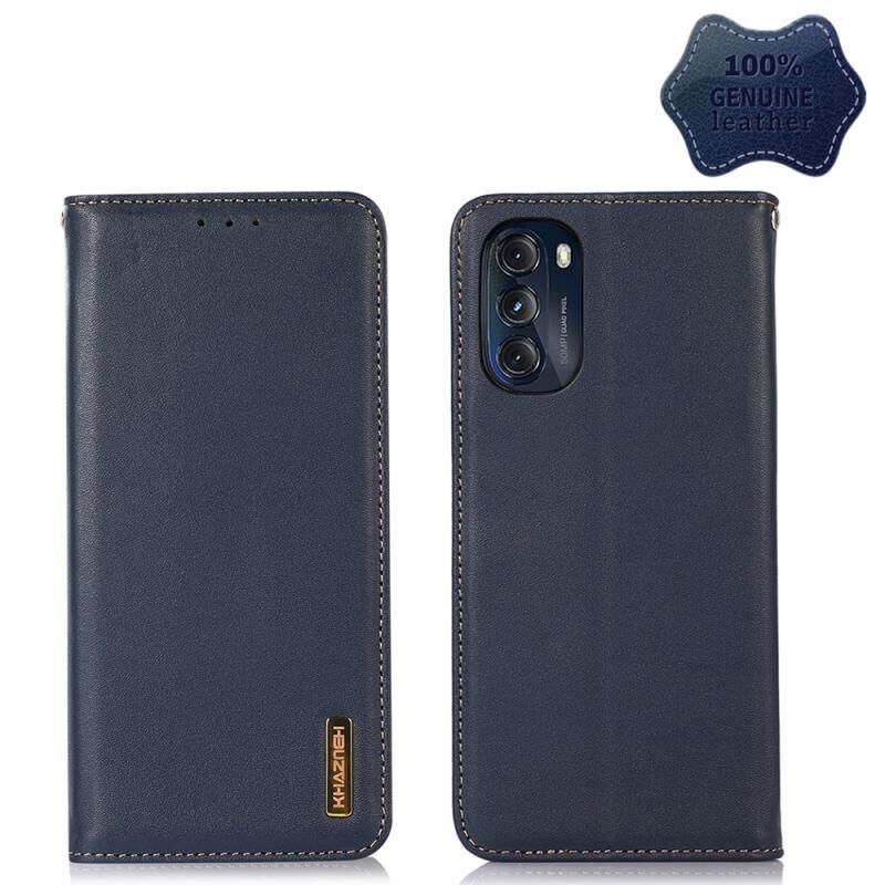 Θήκη τηλεφώνου από γνήσιο δέρμα Nappa αγελάδας για Motorola Moto G 2022 5G KHAZNEH (Μπλε)