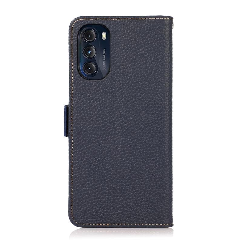 For Motorola Moto G 2022 5G KHAZNEH Side-Magnetic Litchi Genuine Leather RFID Phone Case(Blue)
