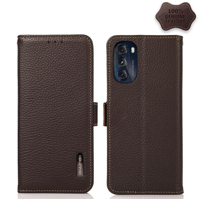 Για Motorola Moto G 2022 5G KHAZNEH Μαγνητική Θήκη Τηλεφώνου από Γνήσιο Δέρμα Litchi με Προστασία RFID (Μπλε)